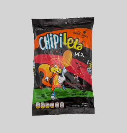 paleta sabor naranja, chamoy o sandia con dulce en polvo. Bolsa de 30 piezas. Peso del paquete 330 g (11.64 oz )